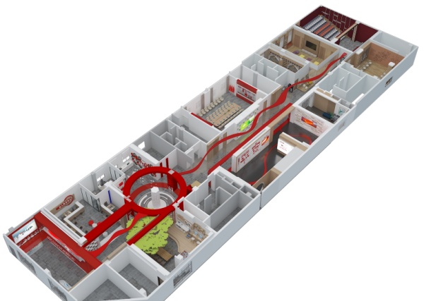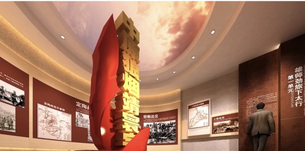 設計方案以《復興之路》基本陳列方案設計結合陳列大綱內容,運用多種陳展手段,充分展示大量的館藏珍貴文物和圖片資料,避免圖板加展品的單一陳展形式。