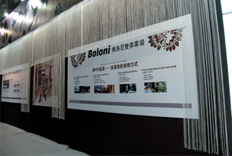 還有一種是四面都沒有墻體的展位,比較大,往往是幾個標準展位合在一起的,其特點是方便做造型,容易制造氣氛來吸引觀眾進入,但是特裝展臺設計和布置的費用比較高。